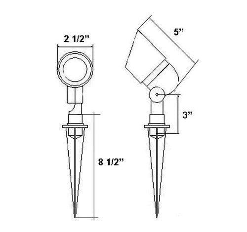 DL01 Cast Aluminum Spot Light With Ground Plastic Spike & 18" wire 12V AC